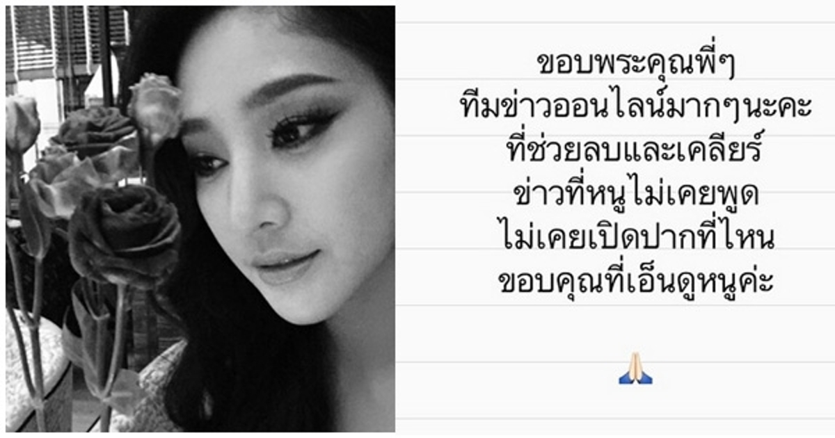 ล่าสุด (6 พฤษภาคม 2558) ทางสื่อดังได้ลบข่าวดังกล่าวออกไปแล้ว ทางด้านสาวแตงโม เลยออกมาโพสต์ข้อความลงในอินสตาแกรมของตัวเองว่า "ขอบพระคุณพี่ ๆ ทีมข่าวออนไลน์มาก ๆ นะคะ ที่ช่วยลบและเคลียร์ข่าวที่หนูไม่เคยพูด ไม่เคยเปิดปากที่ไหน ขอบคุณที่เอ็นดูหนูค่ะ" และยังบอกด้วยว่า "งานมงคลมีไว้แสดงความยินดี ให้เกียรติพี่สาวที่หนูรัก ไม่ได้เอาไว้สร้างข่าวค่ะ #วันงานงดสัมภาษณ์นะคะ #ขอบพระคุณที่เข้าใจหนูน้า #ขอบคุณจากใจจริง ๆ ค่ะ"
