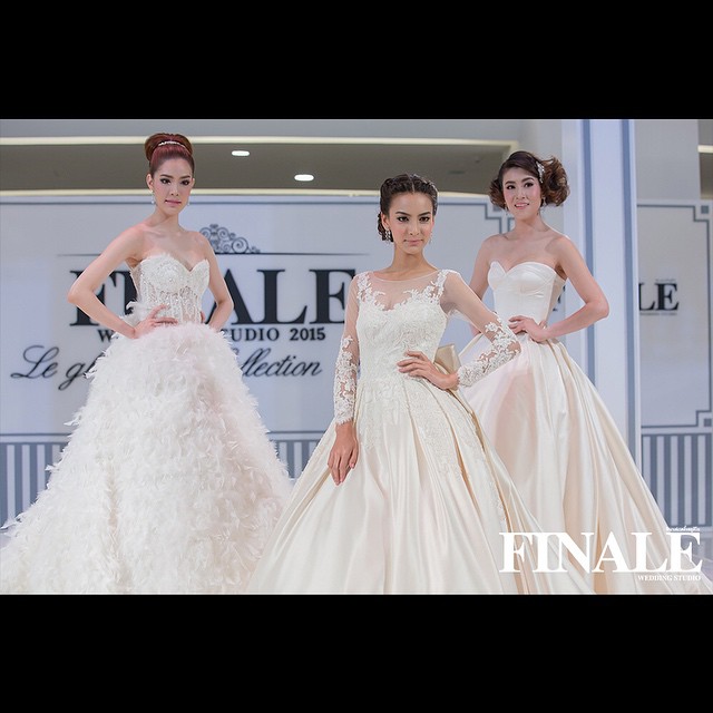 ฟินาเล่ เวดดิ้ง สตูดิโอ สตูดิโอชุดแต่งงานที่คนในวงการใช้บริการกันคับคั่ง จัดงานเดินแบบเผยคอลเลคชั่น FINALE WEDDING STUDIO 2015 LE GLAMOUR ที่ห้างสรรพสินค้าดิเอ็มโพเรียม ไปเมื่อวันที่ 22 พฤษภาคม ที่ผ่านมา มีดาราสาวสวยมาร่วมงานเพียบ นำโดยสองนางเอกสาว ขวัญ อุษามณี และ แพนเค้ก เขมนิจ ที่สวยผุดผาดอย่างกับเดินออกมาจากความฝัน โดยสาวขวัญมาในชุดแต่งงานไทยสีทอง ขับผิวให้ยิ่งขาวผ่อง ในขณะที่สาวแพนเค้ก มาในชุดเจ้าสาวสีขาวบริสุทธิ์กับผ้าคลุมศีรษะ สวยอย่างกับเจ้าหญิงในเทพนิยายเลยทีเดียว