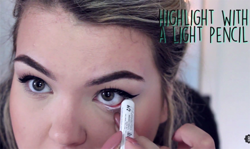 12. เพิ่มความโดดเด่นให้ดวงตาด้วยอายไลเนอร์แบบดินสอสีขาว นำมาเขียนที่ขอบตาล่างเพียงครึ่งหนึ่ง