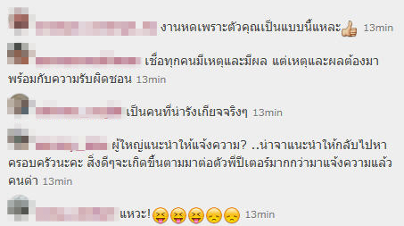 ซึ่งภายหลังจากที่ ปีเตอร์ คอร์ป ได้โพสต์ภาพการแจ้งความดังกล่าว ได้มีชาวเน็ตเข้าไปคอมเม้นท์แสดงความคิดเห็นเพียบ โดยบอกว่าให้กลับไปหาลูกเมียได้แล้ว อย่ามัวแต่ห่วงเรื่องชื่อเสียงของตัวเอง บางคนก็บอกว่าพอกันทีขอเลิกติดตามผลงานทุกอย่างของพระเอกหนุ่ม เพราะรับไม่ได้กับหลาย ๆ สิ่ง