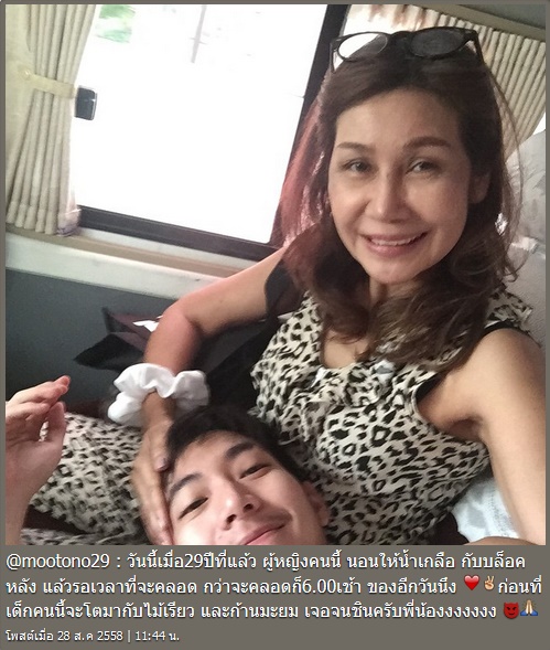 โดยหนุ่ม โตโน่ ภาคิน ได้โพสต์ภาพคู่กับคุณแม่สุดลมโชยลงอินสตาแกรม พร้อมข้อความซึ้ง ๆ ว่า วันนี้เมื่อ 29 ปีที่แล้ว ผู้หญิงคนนี้นอนให้น้ำเกลือกับบล็อกหลัง รอเวลาคลอดอยู่นาน ซึ่งกว่าจะคลอดก็ 06.00 น. เช้าของอีกวัน หลังจากคลอดเด็กคนนี้ออกมา เด็กคนนี้ก็โตมากับไม้เรียวและก้านมะยม เจอจนชินครับ
