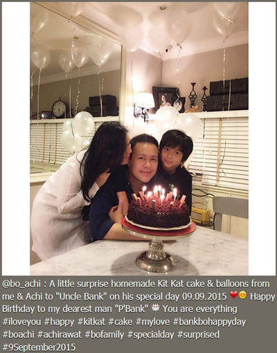 ล่าสุด (14 กันยายน 2558) เมื่อวันที่ 9 กันยายน ที่ผ่านมา เนื่องในวันคล้ายวันเกิดของหนุ่ม แบงค์ กฤชพล สาว โบ ชญาดา พร้อมกับลูกชายอย่าง น้องอชิ จึงได้ทำเซอร์ไพรส์ โดยลงมือทำเค้กคิทแคท พร้อมกับจัดปาร์ตี้เล็ก ๆ ทำเอาหนุ่มแบงค์ถึงกับยิ้มแก้มปริ มีความสุขสุด ๆ