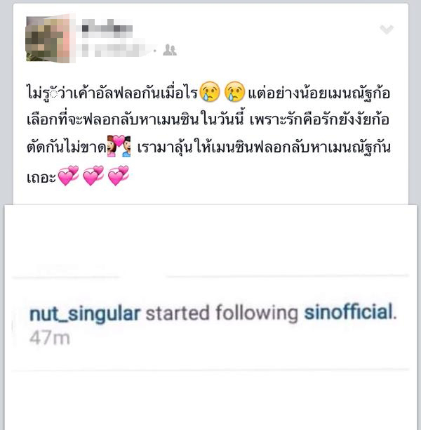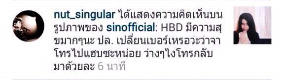 เมื่อแฟนคลับตาไวเห็นหนุ่มนัท เข้าไปโพสต์ข้อความอวยพรวันเกิดให้ซินในอินสตาแกรมว่า "HBD มีความสุขมาก ๆ นะ ป.ล.เปลี่ยนเบอร์เหรอวะ ว่าจะโทรไปแฮปซะหน่อย ว่าง ๆ ไงโทรกลับมาด้วยล่ะ" และแฟนคลับยังเห็นนัทกดติดตามอินสตาแกรมของซินด้วย