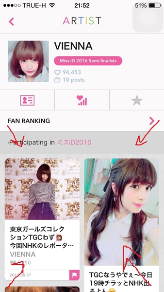 และล่าสุด น้องเวียนนาก็กำลังจะประกวด miss id(idol) ซึ่งเป็นการประกวดของญี่ปุ่นที่คล้าย ๆ กับ AF หรือ the star ของบ้านเรานั่นเอง เรียกได้ว่าเป็นสาวน้อยที่ฮอตสุด ๆ เพราะตอนนี้ผลโหวตของน้องเวียนนา อยู่ที่อันดับ 3 จากผู้เข้ารอบทั้งหมดที่คัดเลือกรอบแรกจาก 4,000 คน จนเหลือ 228 และ 114 คนตามลำดับ