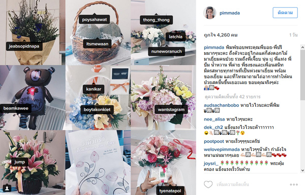 นอกจากนี้บอกเลยว่าสาวพิม พิมพ์มาดา กำลังใจล้นหลามสุด ๆ เพื่อนพ้องทั้งในทั้งนอกวงการส่งดอกไม้มาเยี่ยมกันเพียบ บ้างก็มาส่งกำลังใจให้กันถึงโรงพยาบาล ทั้งนี้กระปุกดอทคอมก็ขออวยพรให้สาวพิมกลับมามีสุขภาพแข็งแรงไว ๆ ด้วยนะคะ