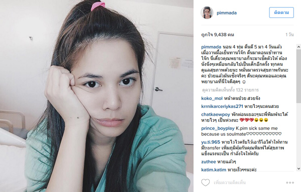 อดที่จะเป็นห่วงไม่ได้ สำหรับนักแสดงสาว พิมพ์มาดา ที่ต้องเข้ารับการผ่าตัดเนื้องอก เมื่อวันที่ 20 ตุลาคมที่ผ่านมา ล่าสุด (22 ตุลาคม 2558) สาวพิม อาการเริ่มดีขึ้นเรื่อย ๆ พร้อมอัพเดทอาการและบอกเล่าเรื่องราวระหว่างที่ต้องนอนพักรักษาตัวอยู่โรงพยาบาลผ่านทางอินสตาแกรมว่า ก่อนเข้ารับการผ่าตัดต้องงดน้ำ งดอาหาร 3 วัน หลังผ่าตัดเสร็จอาหารที่ต้องทานทุกมื้อคือโจ๊ก นอน 4 ทุ่ม ตื่นตี 5 แทบทุกวัน แถมยังมีพยาบาลมาคอยเช็ดตัวให้ด้วย เหมือนกลับไปเป็นเด็กอีกครั้งเลย นอกจากนี้ช่วงที่ต้องนอนอยู่โรงพยาบาลตรงกับวันเกิดคุณแม่พอดี ไม่ว่าจะยังไงก็ขอให้คุณแม่มีความสุขมาก ๆ รักที่สุด