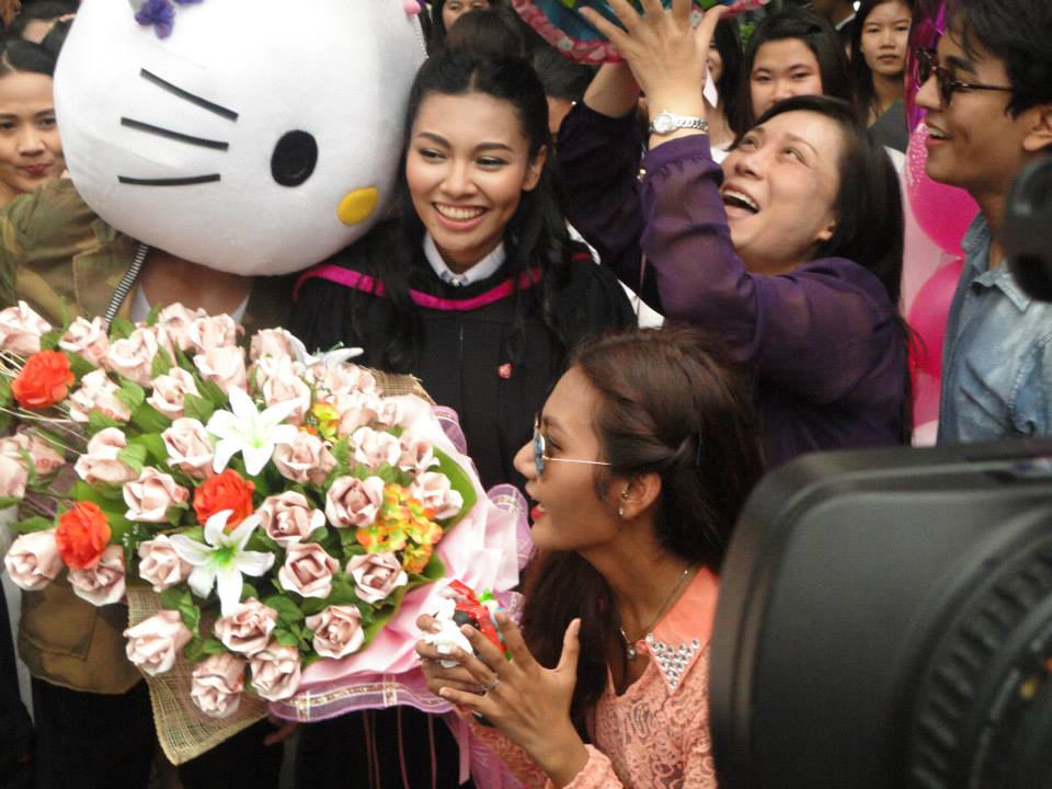 งานนี้สาว แก้ม วิชญาณี เลยขอทวีตข้อความย้อนความน่ารักของหนุ่ม โตโน่ ภาคิน ที่เคยใส่หัวคิตตี้มาร่วมงานรับปริญญาของเธอเมื่อปี 2556 ด้วยว่า "พี่โน่เป็นคนที่ Strong มากค่ะ ตอนงานรับปริญญาแก้มใส่หัวคิตตี้มากับโดม พองานกันใส่พี่หมีทั้งตัวอึดสุด นี่รอดูงานริท 5555555555"
