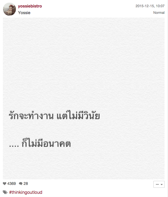 ทำเอาชาวเน็ตงงกันยกใหญ่ เพราะล่าสุด (16 ธันวาคม 2558) ผู้จัดละครคนเก่งอย่าง จ๋า ยศสินี เกิดอาการปรี๊ดแตก ออกมาโพสต์อินสตาแกรมจวกดารานิรนามคนหนึ่ง โดยบอกว่า “คนจะประสบความสำเร็จ ไม่ใช่แค่เก่งหรือดี แต่วินัยและความรับผิดชอบต่อส่วนรวมก็สำคัญเช่นกัน #ThinkingOutLoud”