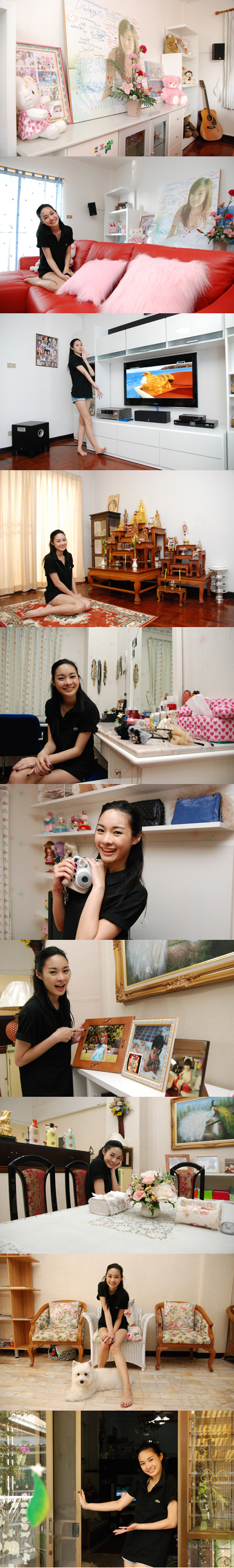 มด : ตั้งแต่เกิดค่ะ 19 ปี แต่ 19 ปีนี่สภาพบ้านไม่ได้เป็นแบบนี้เลย เพราะแม่กับพ่อจะชอบเปลี่ยนแปลงนู่นนี่ตลอดค่ะ จนบางทีมดกลับบ้านมาก็ตกใจเพราะจำห้องตัวเองไม่ได้ อย่างบางทีมดก็ต้องตื่นมาแต่เช้าเพื่อมาดูบ้าน ดูสุนัขให้แม่เค้าด้วยค่ะ