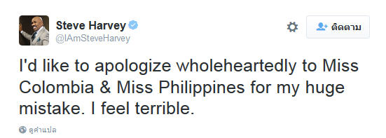 สตีฟ ฮาร์วีย์ พิธีกร Miss Universe 2015 กล่าวขอโทษ นางงามฟิลิปปินส์ หลังประกาศผลผิด ทำคนอึ้งกันทั้งโลก