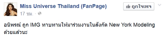 อย่างไรก็ดี หลังจากเสร็จสิ้นการประกวด ทางแฟนเพจ Miss Universe Thailand (FanPage) ได้ออกมาเผยว่า ความสวยและความปังของน้องแนทเตะตา IMG บริษัทลูกของ "William Morris Endeavor" ที่ซื้อลิขสิทธิ์การประกวด Miss Universe มาจาก โดนัลด์ ทรัมป์ เข้าอย่างจัง จีบน้องแนทให้มาร่วมงานในสังกัด New York Modeling