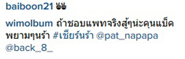 เม้าท์สนั่นลั่นซอยกันเลยค่ะคุณขา..เมื่อนักเตะหนุ่มอย่าง แบ็ก อาทิตย์ ดาวสว่าง มีข่าวคราวว่าเดินเกมรุกจีบสาวโสดสุดฮอตอย่าง แพท ณปภา งานนี้เหล่าสาว ๆ เลยขอแฉพฤติกรรมกันเพียบ !! บอกให้สาวแพทระวังตัว เพราะผู้ชายคนนี้มีพฤติกรรมฉาวเรื่องผู้หญิง คบซ้อนสารพัด ยืมเงินแฟนมากมาย (อ่านข่าว สาว ๆ เม้าท์สนั่น ! แบ็ก อาทิตย์ ที่กำลังเป็นข่าวจีบ แพท ณปภา คบซ้อน-ยืมเงินสาว)