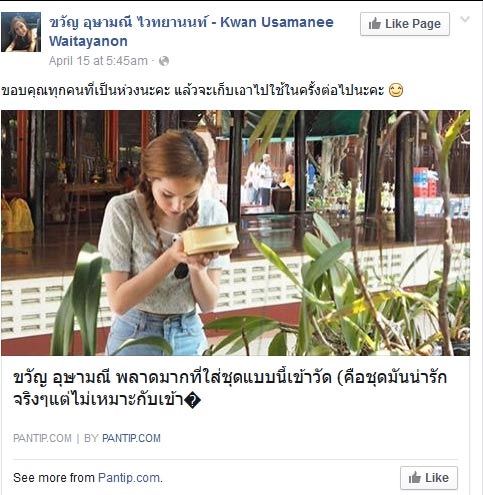 ด้านแฟนคลับของสาวขวัญก็ได้เข้ามาให้กำลังใจขวัญเป็นจำนวนมาก และเชื่อว่า ที่ขวัญใส่ชุดแบบนั้นเข้าวัด คงไม่เจตนาให้เกิดความเสื่อมเสียแต่อย่างใด