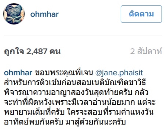 โอม Cocktail สุดปลื้ม สอบผ่านวิธีพิจารณาความอาญา ถือเป็นความสำเร็จอีกขั้น เตรียมก้าวสู่เส้นทางเนติบัณฑิต สมัยที่ 68