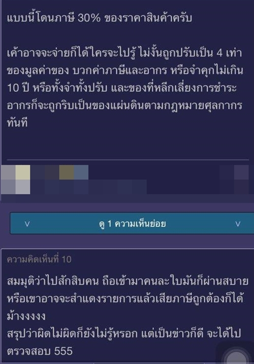 โดยที่เว็บไซต์พันทิปดอทคอม ได้มีการตั้งกระทู้ถึงประเด็นดังกล่าวด้วยว่า "ขอถามเป็นความรู้ค่ะ กรณีที่ มิน พีชญา ซื้อกระเป๋าเข้าประเทศเยอะขนาดนี้ ถือว่าผิดมั้ยคะ ? ซึ่งมีผู้เข้ามาแสดงความคิดเห็นมากมาย โดยบอกว่านางเอกสาวอาจเสียภาษีมาอย่างถูกต้องก็เป็นได้ หรือไม่งั้นก็อาจให้เพื่อน ๆ ที่ไปเที่ยวด้วยกันถือเข้ามาคนละใบ ในขณะที่บางส่วนก็บอกว่าต่อให้เพื่อนถือเข้ามาให้แต่มูลค่าของก็เกิน 20,000 บาทอยู่ดี
