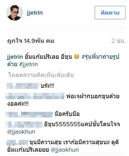 งานนี้ทำเอาทีมสะใภ้ขำแคปชั่นคุณพ่อเจกันซะยกใหญ่ พร้อมร่วมแซวแจมไปด้วยว่า มือโอบเนียนเชียวนะเจ้าขุน ทำแบบนี้ทีมสะใภ้หึงนะจะบอกให้