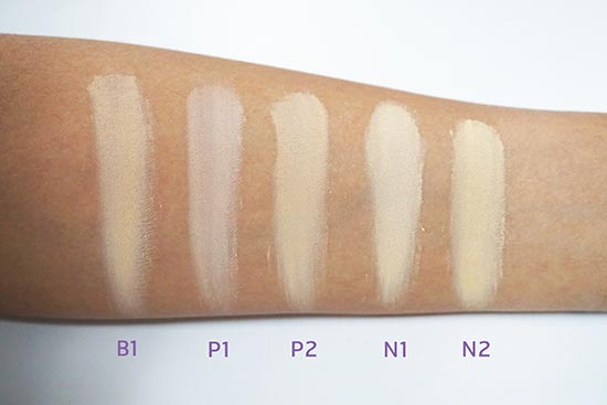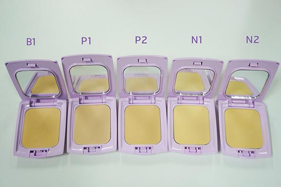 สำหรับเจ้าแป้งตัวนี้มีด้วยกันทั้งหมด 5 เบอร์ ได้แก่ B1 สำหรับผิวขาวออร่า ซึ่งเป็นโทนสีใหม่ล่าสุด, N1 ผิวขาวธรรมชาติ, N2 ผิวธรรมชาติ, P1 ผิวขาวชมพู และ P2 ผิวชมพูค่ะ