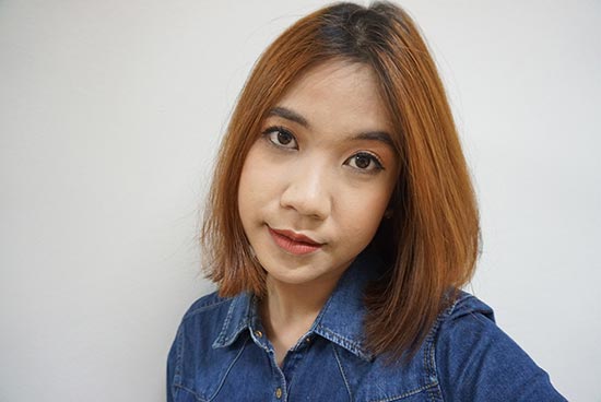 ด้วยความที่อยากพิสูจน์ให้เห็นชัด ๆ ว่า พอทาแป้งแล้วมันเกิดความเปลี่ยนแปลงจริงอะไรจริง เลยลองทาครึ่งหน้ามาให้เห็นความแตกต่างกันก่อน ข้างที่ทาก็ขาวเด้งขึ้นมาทันตา แตกต่างจากผิวจริงของเราทันที