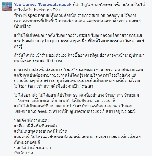 ภาพจาก เฟซบุ๊ก Yae Uunws Teerawatanasuk