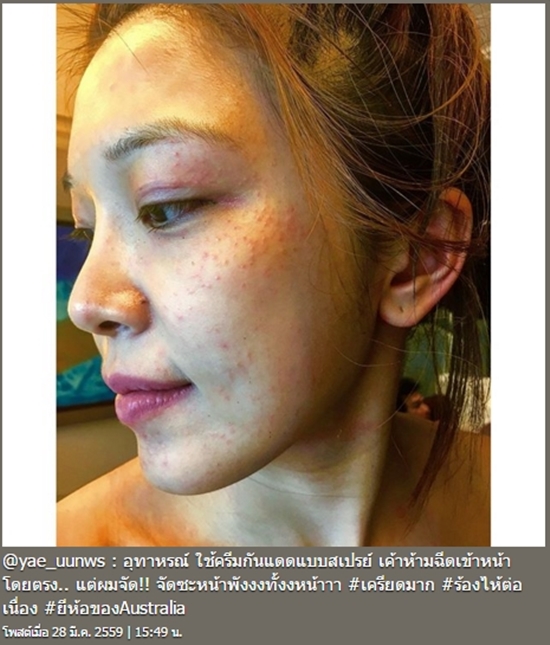 6. หญิงแย้ หน้าพังเพราะฉีดสเปรย์กันแดด