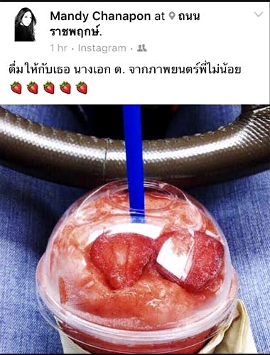 และสุดท้ายกับ แมนดี้ ชนะพล เล็กประเสริฐ ดีไซเนอร์ไทยคลื่นลูกใหม่ ที่เคยคว้าแชมป์ในรายการ เดอะ ดีไซเนอร์ ได้ออกมาโพสต์แบบตรง ๆ แรง ๆ เป็นรูปน้ำสตรอว์เบอร์รีปั่น พร้อมติดแคปชั่นว่า "ดื่มให้กับเธอ นางเอก ด. จากภาพยนตร์พี่ไม่น้อย"