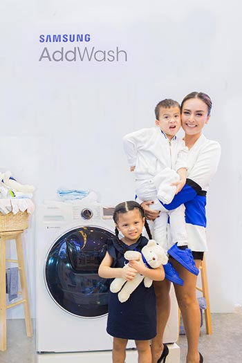 ส่วนด้าน "นานา ไรบีนา" คุณแม่น้องบีนาและน้องบรู๊คลิน ตัวแทนคุณแม่ลูกแฝดวัยซนจากแก๊งนางฟ้า เผยว่า "การดูแลเสื้อผ้าเป็นงานใหญ่ของแม่บ้าน ไม่ว่าแม่บ้านยุคไหน โชคดีที่ทุกวันนี้มีตัวช่วยดี ๆ เยอะ ที่บ้านนานาใช้เครื่องซักผ้าฝาหน้าค่ะ บ่อยครั้งที่เริ่มกระบวนการซักผ้าไปแล้ว และลูกทำเสื้อเลอะเทอะ ไม่สามารถเปิดเครื่องซักผ้าฝาหน้าเติมผ้าได้ ต้องรออีกหลายวันกว่าจะซักรอบใหม่ หรือถ้ารอไม่ไหวก็ต้องซักมือ ถ้าเครื่องซักผ้ามีช่องเติมผ้าสามารถเพิ่มผ้าได้ระหว่างรอบซักจะช่วยประหยัดเวลาให้นานาได้มากค่ะ หรือเมื่อก่อนซักเสื้อผ้าหนึ่งครั้งต้องรอนานถึง 2-3 ชั่วโมง แต่เดี๋ยวนี้มีนวัตกรรมทันสมัย ที่สามารถซักเสื้อผ้าให้สะอาดโดยใช้เวลาไม่ถึง 1 ชั่วโมง ช่วยประหยัดเวลาให้นานาได้มากค่ะ"