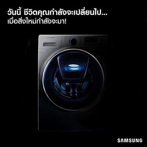 "ซัมซุง แอดวอช (Samsung AddWash)" ที่มีช่องเติมผ้าระหว่างซัก พร้อมทั้งมีเทคโนโลยี