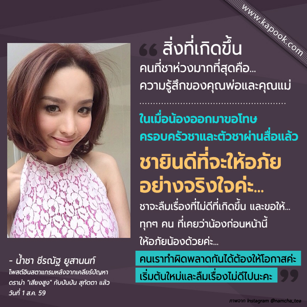 น้ำชา ชีรณัฐ ขอจบดราม่า กะxรี่ เสียงสูง แท็กหา ปันปัน สุทัตตา บอกให้อภัยน้อง พร้อมวอนขอให้ทุกคนให้โอกาส คนเราทำผิดพลาดกันได้ ในที่สุดดราม่าแซ่บ ๆ เรื่อง กะxรี่ เสียงสูง ที่หลายคนปูเสื่อตามติดชิดจอกันมานาน ก็จบลงเป็นที่เรียบร้อยแล้ว หลังสาว