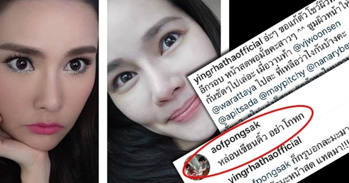 งานนี้พอเพื่อนซี้อย่างหนุ่ม อ๊อฟ ปองศักดิ์ เห็นภาพก็ขอเข้ามาคอมเมนต์แซวด้วยว่า "หล่อนเขียนคิ้ว อย่าโกหก" สาวหญิง รฐา เลยตอบกลับว่า "ก็กรูบอกละมะขอคิ้ว แหมมม แกกล้ามะหน้าสด แท็กมา !!!!"
