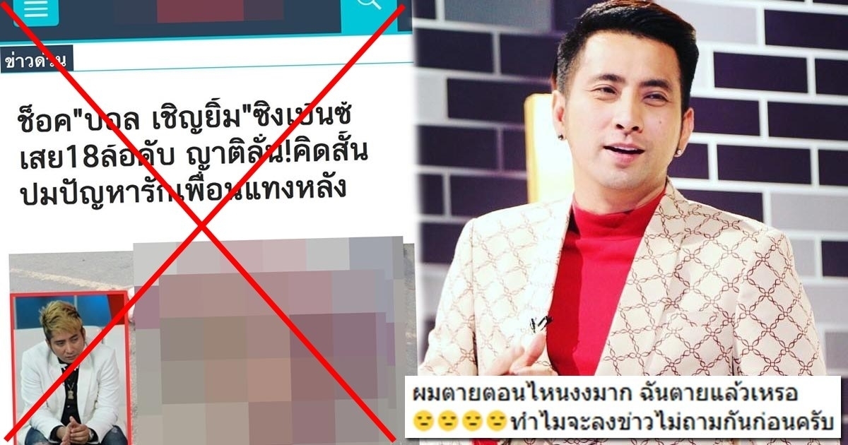 ล่าสุด (17 สิงหาคม 2559) หนุ่มบอล เชิญยิ้ม ก็เป็นดาราอีกคนที่ตกเป็นเป้าของข่าวมั่ว โดยมีข่าวว่าบอล เชิญยิ้ม ซิ่งรถเบนซ์จนเสียชีวิต จนบอลต้องออกมาแก้ข่าวว่าตนยังไม่ตาย แถมยังทิ้งท้ายว่า หากจะลงข่าวแบบนี้ทำไมไม่ถามกันก่อน