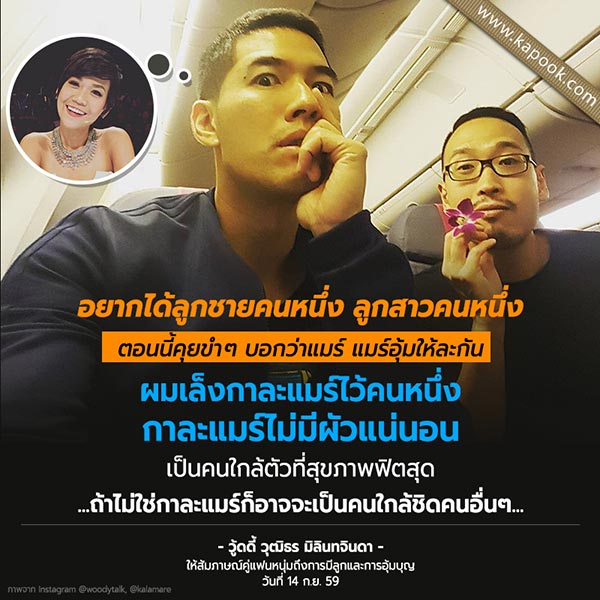 ควงคู่กันมาออกสื่อครั้งแรก หลังเปิดเผยเรื่องแต่งงาน สำหรับพิธีกรชื่อดัง วู้ดดี้ วุฒิธร และแฟนหนุ่ม โอ๊ต ที่คบหาดูใจกันมานานกว่า 9 ปี โดยวู้ดดี้ เผยว่า ตนรู้สึกเหมือนแบกอะไรมาตลอด ตอนที่เป็นข่าวก็คิดว่าจะตอบอย่างไรดี แต่คิดว่าเรื่องจริงมันดีที่สุด ก็ปล่อยมันไป ตอนนี้ก็รู้สึกเบา มันสบาย ยิ่งเพื่อน ๆ มาร่วมยินดีด้วย ยิ่งมีคุณแม่ ๆ หลายคนมาบอกว่า ดีใจที่สามารถคุยกับลูกแม่ได้เพราะเรา เราก็แฮปปี้