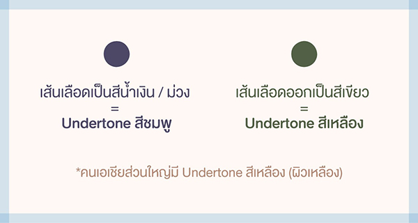 โดยทั่วไปสามารถแบ่งโทนสีผิว (Undertone) ได้เป็น 2 โทน คือโทนสีชมพู และโทนสีเหลือง โดยสังเกตจากเชื้อชาติ สีผิวบริเวณลำคอ หรือสีของเส้นเลือดบริเวณข้อมือ