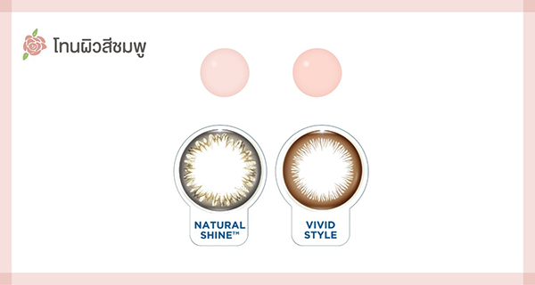 ผิวสีชมพู/โทนเย็น เหมาะกับคอนแทคเลนส์ขอบสีน้ำตาล เช่น Vivid Style ที่ดูอ่อนหวาน จะช่วยให้ใบหน้าของคุณดูโดดเด่น มีเสน่ห์น่าค้นหามากขึ้น และถ้าแต่งหน้าโทนสีเข้ากับสีคอนแทคเลนส์ ก็จะได้ลุคที่ดูมั่นใจ โฉบเฉี่ยวสุด ๆ