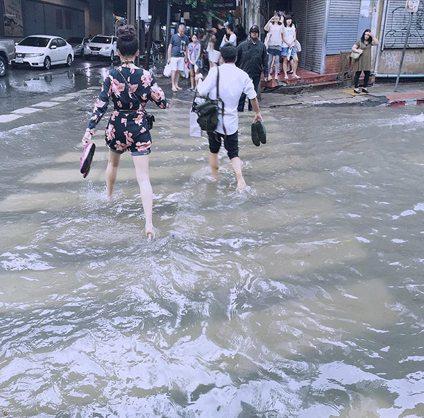 โบว์ เมลดา สุดจะเพลีย ฝนตกหนักน้ำรอระบายทุกหย่อมหญ้า ทนไม่ไหวถอดรองเท้าเดินข้ามทางม้าลาย เป็นคนกรุงมันต้องมีแบบนี้สักครั้งในชีวิต !