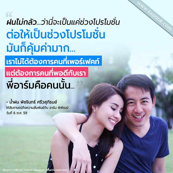 น้ำฝน พัชรินทร์ คบ อาร์ม พิพัฒน์ 4 เดือน บอกอีกฝ่ายดูแลดีเหมือนกลับไปเป็นเด็กอายุ 14 อีกครั้ง รับแอบหวงสั่งห้ามใกล้ชิดกับสาวอื่น
