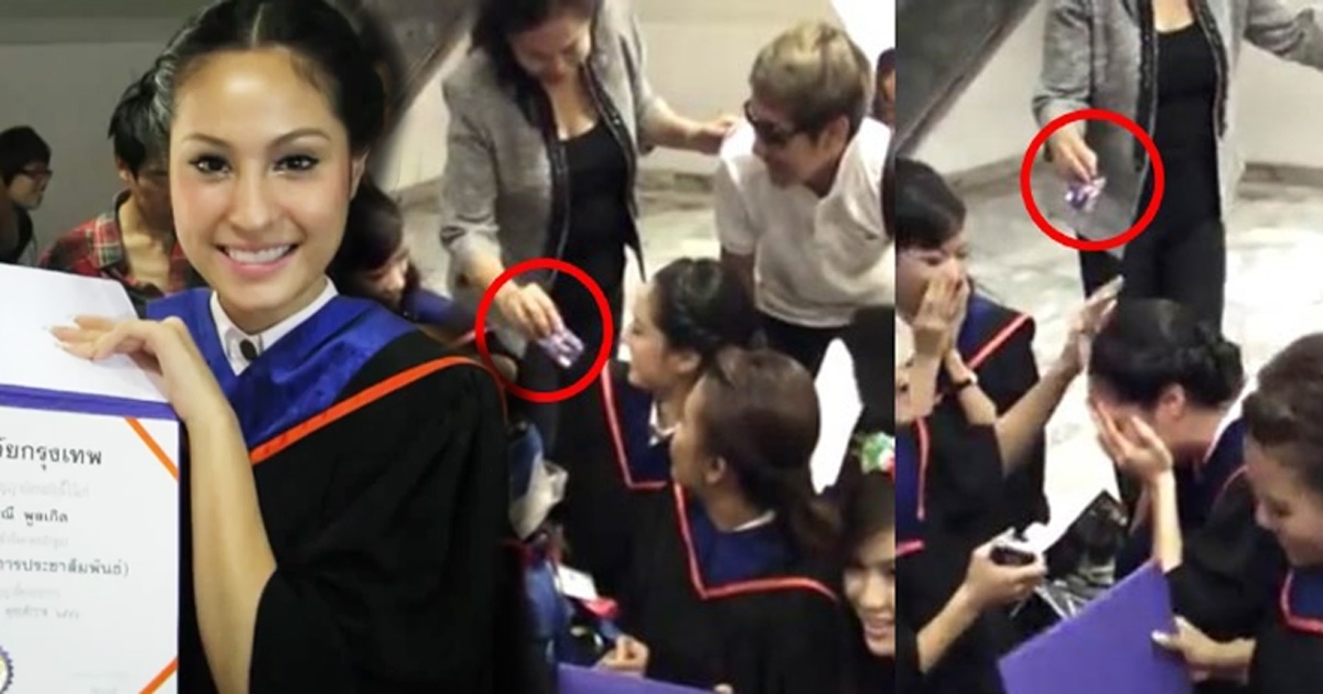 โดยภาพบรรยากาศในคลิปดังกล่าวจะเห็นว่า มีช่วงหนึ่งที่คุณแม่แอ๊ว ปราณี มอบบัตร ATM เป็นของขวัญรับปริญญาให้กับลูกสาวคนเก่ง ทำเอาสาวขวัญ อุษามณี ถึงกับหลั่งน้ำตาด้วยความดีใจ ขณะที่เพื่อน ๆ ต่างส่งเสียงแสดงความดีใจกับของขวัญชิ้นนี้ แถมเพื่อนบางคนยังแอบถามว่า คุณแม่แอ๊ว ปราณี ใส่เงินไว้ในบัตร ATM เท่าไร