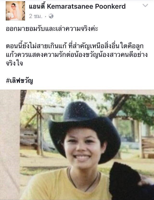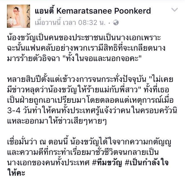 ดราม่าหนักขึ้นเรื่อย ๆ คนสร้างเพจแอนตี้ Kemaratsanee Poonkerd ลูกแก้ว พี่สาว ขวัญ อุษามณี ติดแฮชแท็ก #ทีมขวัญ