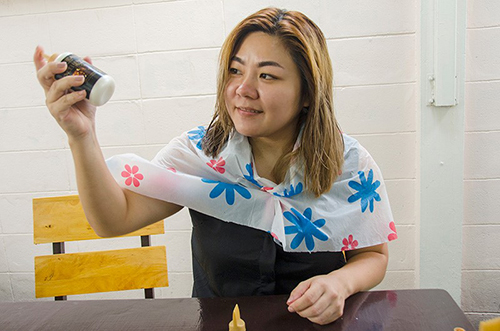 จากนั้นก็เริ่มบีบครีมลงบนโคนผมให้ทั่วก่อน โดยเราจะใช้แปรงหัวแหลม สำหรับบริเวณโคนผมสีดำที่ขึ้นใหม่ค่ะ เห็นไหมคะ เนื้อครีมสีขาวดูดีเชียว ^^