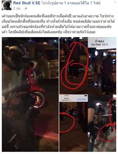 ดราม่า "กราบรถกู" ยังไม่ทันซา ก็มีประเด็นคลิปฮอตของดาราคนดังมาให้ได้ติดตามกันอีกแล้ว เมื่อล่าสุด (9 พฤศจิกายน 2559) เฟซบุ๊ก Red Skull V.SE ได้เผยภาพและคลิปเหตุการณ์ อ้างเป็นนักร้องดังที่เคยมีข่าวฉาวเมื่อช่วงต้นปี ก่อเหตุเมาแล้วอาละวาด โชว์กร่างที่ป่าตอง จนเกือบโดนเด็กในพื้นที่รุมกระทืบ