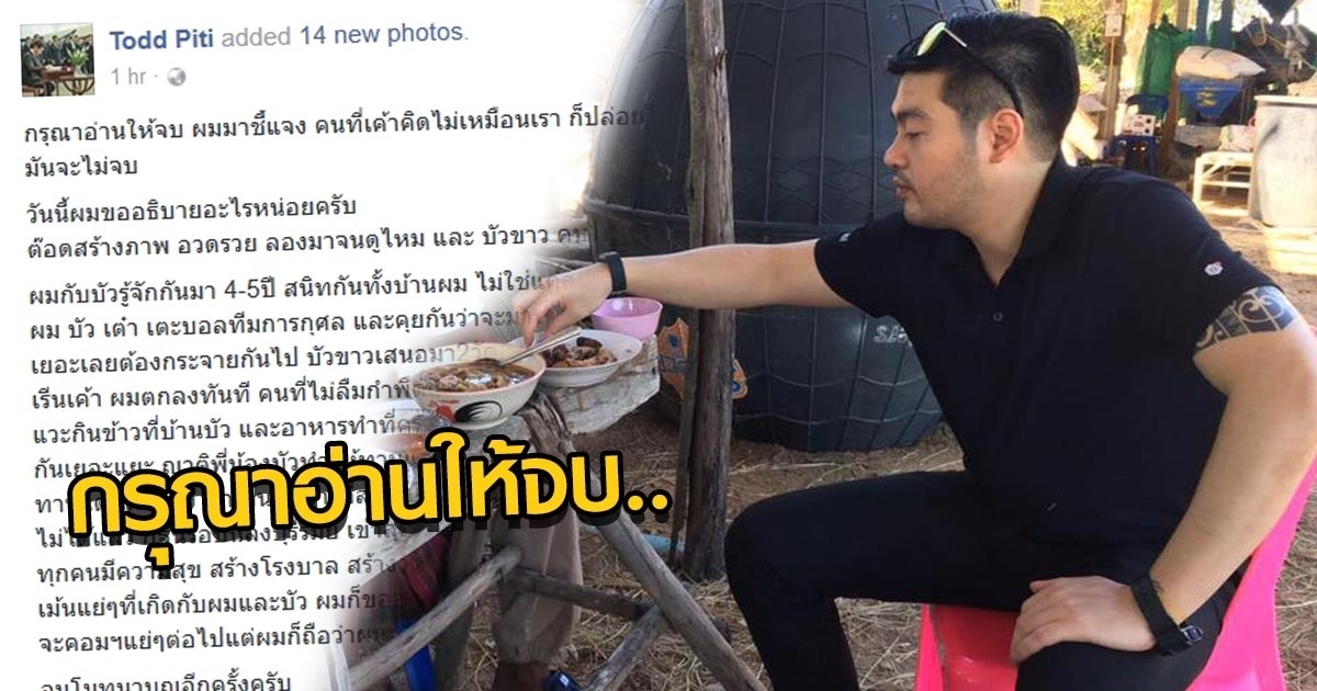 ต๊อด ปิติ ไม่โอเค หลังคนดราม่าหาว่าสร้างภาพด้วยการจกปลาร้า พร้อมออกโรงปกป้องบัวขาว ที่คนมองว่าคบต๊อดเพื่ออัพเกรดตัวเอง คนเราจะทำดี ก็ต้องมีมารผจญมาเป็นธรรมดา เหมือนหนุ่ม