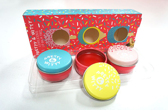 ข้างในเป็นกระปุกลิปบาล์มกลม ๆ มี 3 ชิ้น 3 กลิ่น