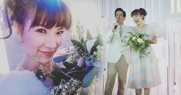 โดยงานนี้สาวต้นหอม ก็ได้โพสต์อวดช่อดอกไม้งาม ๆ ลง IG