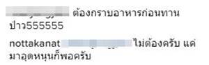 แต่งานนี้หนุ่มน็อตกลับเจอเกรียนป่วน ถามกวน "ต้องกราบอาหารก่อนกินป่าว" โดยหนุ่มน็อต ได้ตอบกลับไปเบา ๆ ว่า "ไม่ต้องครับ แค่มาอุดหนุนก็พอครับ" อย่างไรก็ดี ก็มีแฟนคลับเข้ามาให้กำลังใจหนุ่มน็อตมากมาย