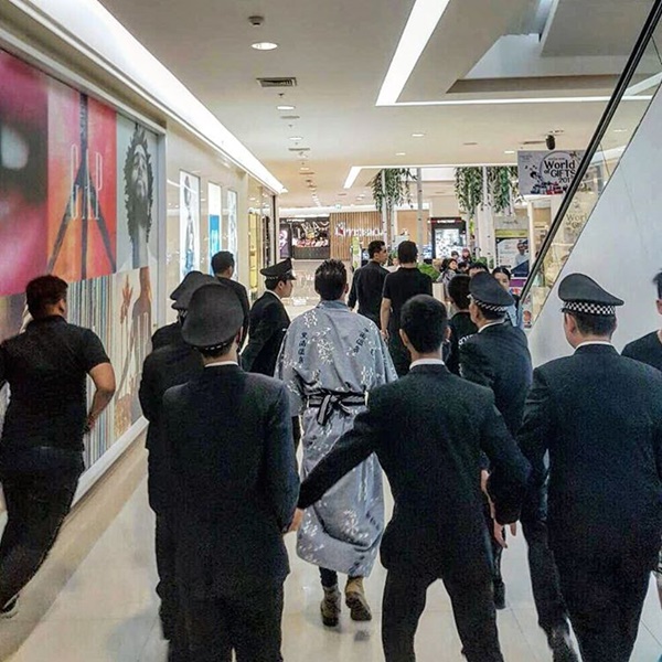 กันใหญ่เลยว่า ดูมีความเป็นยากูซ่าสุด ๆ ต้องมีบอดี้การ์ดล้อมหน้าล้อมหลัง