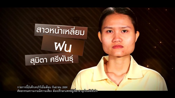 โดย ฝน สุมิตา หญิงสาวผู้มีปัญหาเกี่ยวกับรูปหน้า เล่าว่า ใบหน้าของตนเริ่มผิดปกติ ช่วงประมาณ ม.ต้น แต่ยังไม่ออกเป็นสี่เหลี่ยมจัตุรัสขนาดนี้ ตอนเด็ก ๆ ถูกเพื่อนล้อว่า บอดี้การ์ดหน้าเหลี่ยม หน้าบาน ซึ่งตนก็ไม่ได้อยากเกิดเป็นแบบนี้ ทำให้กลายเป็นคนไม่มั่นใจในตัวเอง ชอบดูถูกตัวเอง จนกระทั่งตอนที่ตนเรียนมหาวิทยาลัยก็อยากทำงานช่วยครอบครัว แต่เมื่อไปสมัครก็ไม่มีใครเรียกไปทำงาน