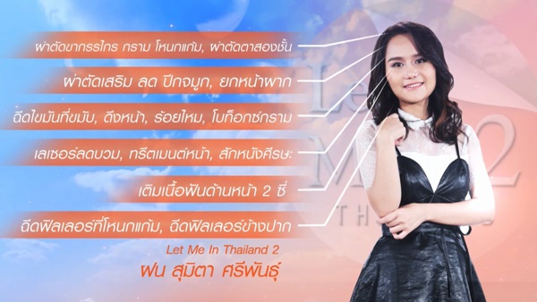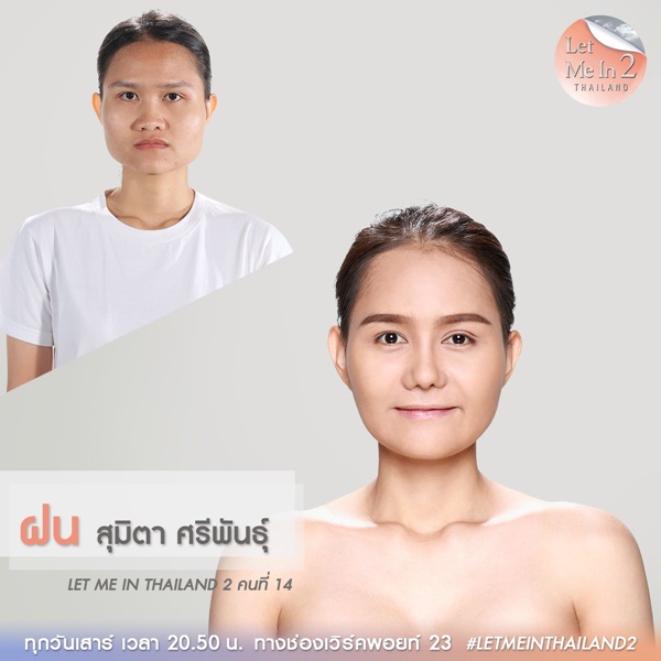 จากคำล้อเลียนต่าง ๆ ในวัยเด็กได้สร้างปมในชีวิตให้กับหญิงสาวคนหนึ่งกลายเป็นคนที่ไม่มั่นใจในตัวเอง ฝน สุมิตา ศรีพันธุ์ สาวหน้าเหลี่ยมที่มีชีวิตขมขื่น ล่าสุด (21 มกราคม 2560) รายการ Let Me In Thailand 2 ก็ได้มอบโอกาสให้เธอได้พลิกชีวิตเปลี่ยนเป็นคนใหม่อีกครั้ง ด้วยการเข้ารับการศัลยกรรมที่ประเทศเกาหลี