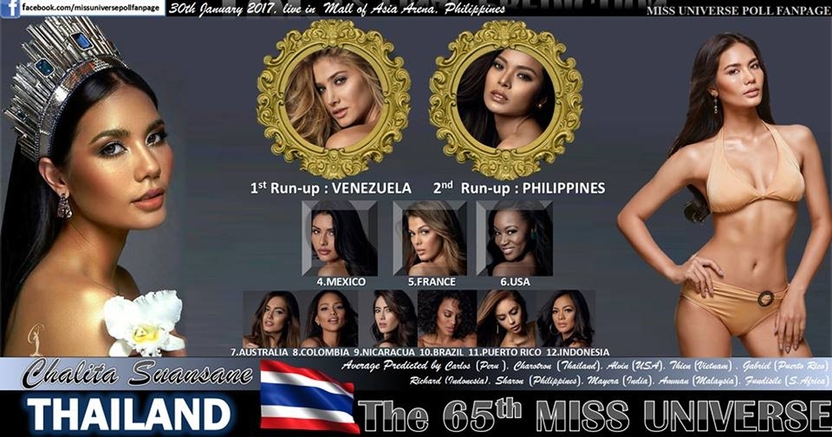 ภาพจาก เฟซบุ๊ก MISS UNIVERSE POLL FANPAGE, Miss Universe Thailand