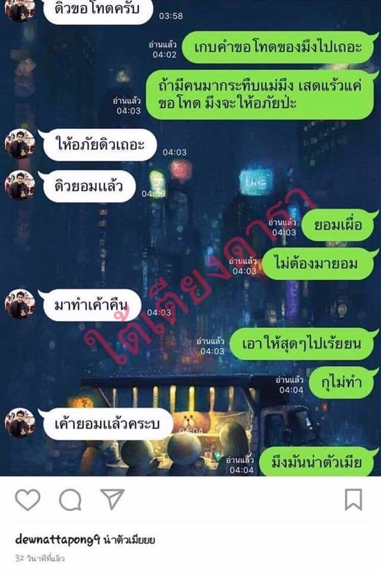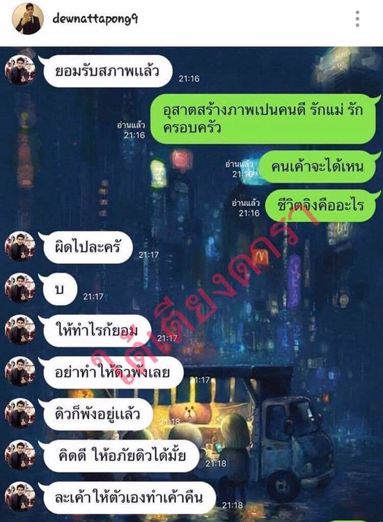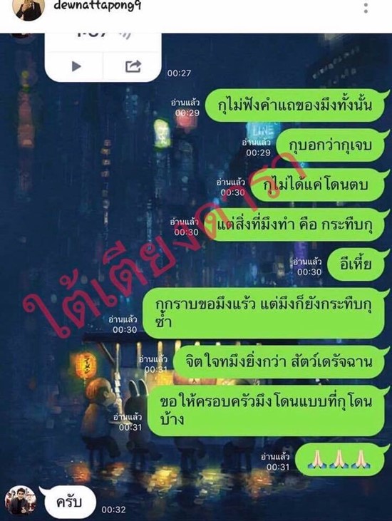 แต่ก็ยังโดนกระทืบ ในขณะที่แชทไลน์ที่ใช้รูปหนุ่มดิวขึ้น