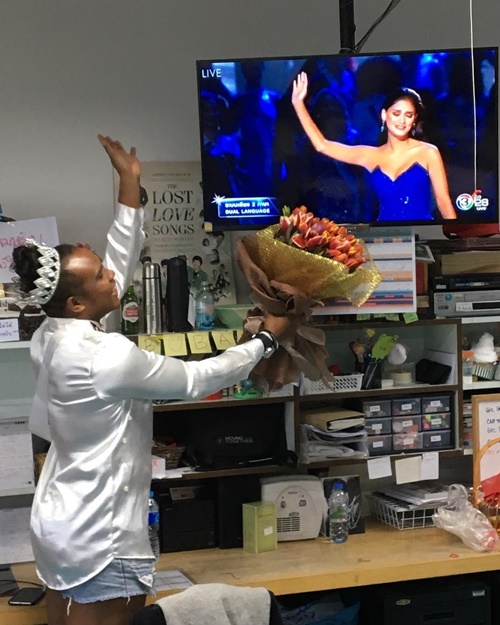 และกระแสของนางงามก็ยังคงแรงอย่างต่อเนื่อง เพราะเวทีนางงามปีนี้มันร้อนระอุจริง ๆ ล่าสุด (30 มกราคม 2560) รัศมีแข ฟ้าเกื้อล้น หรือที่หลายคนรู้จักกันในชื่อ เอ็นจอย จากซีรีส์ เพื่อนรักเพื่อนร้าย ก็ขออินกระแสนางงามเชียร์ น้ำตาล ชลิตา จากเวทีประกวด มิสยูนิเวิร์ส 2016 ในครั้งนี้ด้วยการสวมมงกุฎพร้อมสายสะพาย THAILAND ทำกิจกรรมต่าง ๆ ไม่ว่าจะเป็นนั่ง นอน เข้าห้องน้ำ หรือแม้กระทั่งออกกำลังกาย เรียกได้ว่าเป็นแฟนนางงามตัวจริงเสียงจริงเลยทีเดียว