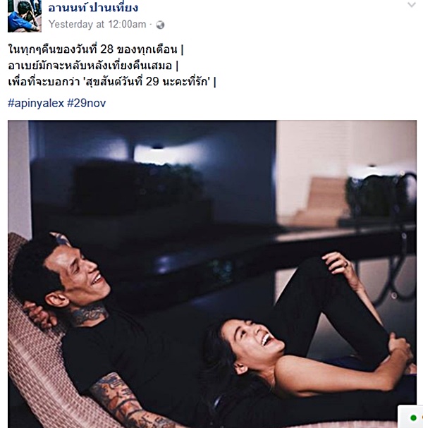 และล่าสุด (31 มกราคม 2560) เบได้เผยถึงความโรแมนติกที่เบได้ทำให้สายป่านมาตลอด โดยทุก ๆ คืนของวันที่ 28 ของทุกเดือน เบเองมักจะหลับหลังเที่ยงคืนเสมอ เพื่อบอกสายป่านว่า \'สุขสันต์วันที่ 29 นะคะที่รัก\'